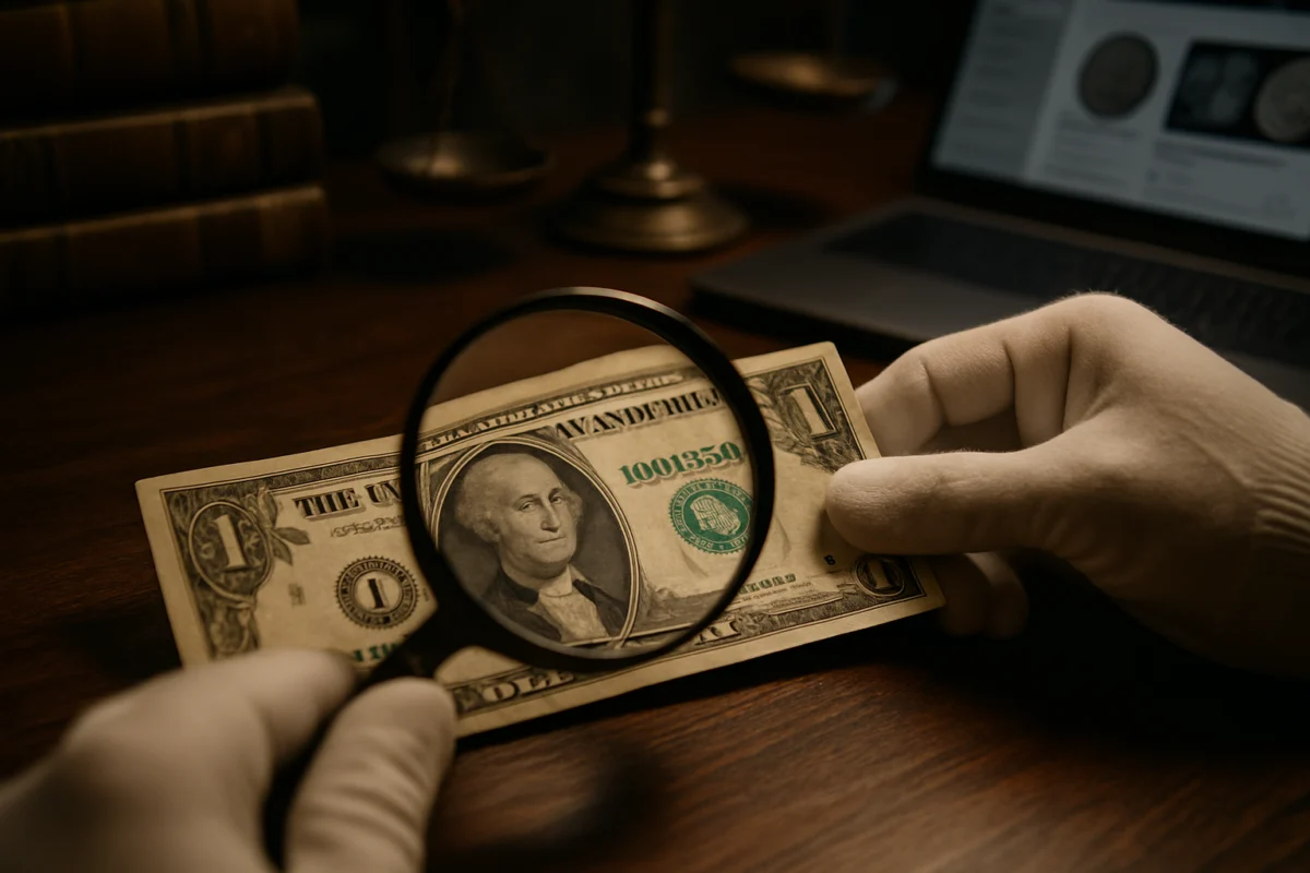 Quando osservi un biglietto da 1 dollaro, usa una lente d’ingrandimento e presta attenzione ai dettagli: il filigrana (se presente), i microtesti, la qualità dell’inchiostro e la posizione dei numeri di serie. I numeri di serie possono essere particolarmente interessanti: sequenze ripetute come 11111111, numeri palindromi, numeri molto bassi come 00000001 o numeri di serie con pattern particolari attirano spesso offerte superiori al valore nominale. Altri elementi da controllare sono gli errori fisici, come perforazioni sbagliate, forature parziali, o stampe fuori registro che possono indicare un difetto di stampa. È importante anche valutare lo stato di conservazione: una banconota in condizioni perfette (graded) ha valore molto maggiore rispetto a una consumata, piegata o macchiata. Per una valutazione approfondita, le autorità ufficiali come il Bureau of Engraving and Printing descrivono i processi e le caratteristiche di produzione che possono spiegare come e perché si verificano certi errori (https://www.moneyfactory.gov). Se hai dubbi sull’autenticità, rivolgerti a esperti o a laboratori numismatici professionali è la scelta più sicura.